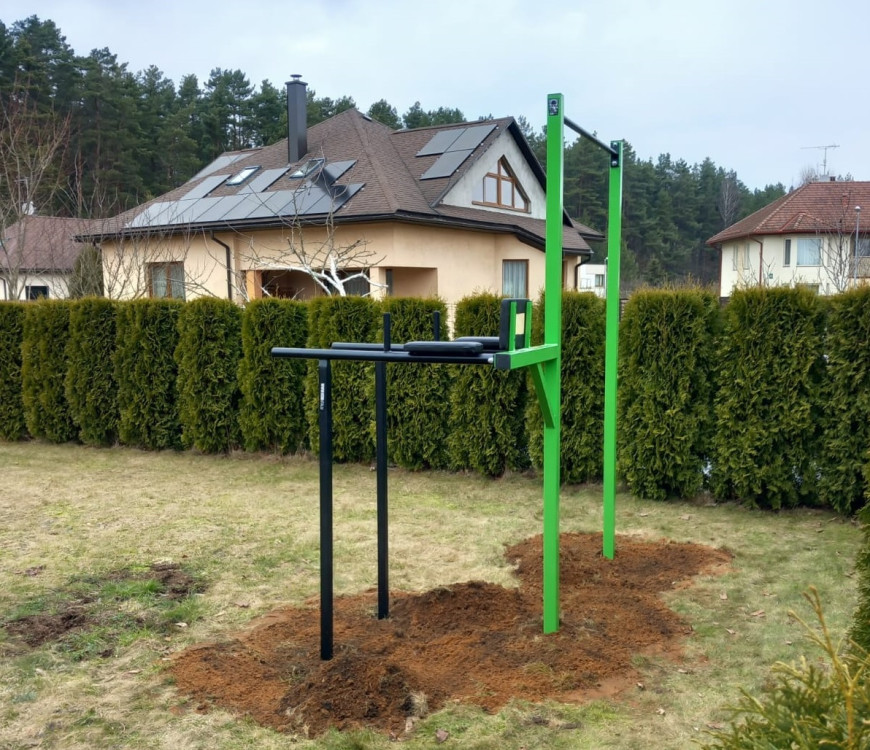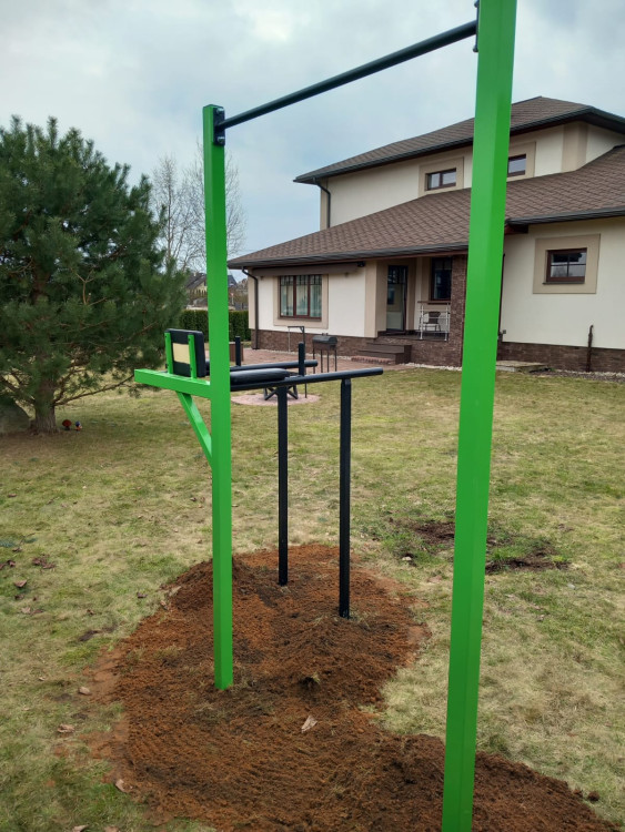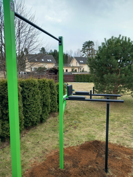 Āra sporta komplekss Nr.26- izturīgs sporta komplekss, sastāv no 2. daļām. Līdztekas ar muguras atbalstu un spilveniem. Visas daļas apkārt apmetinātas. Pulverkrāsas izvēles iespējāmība.