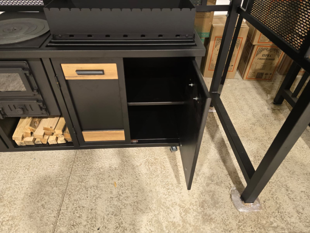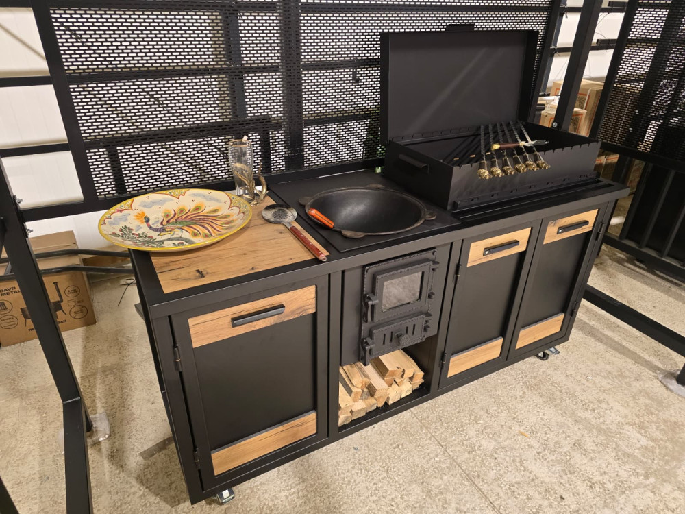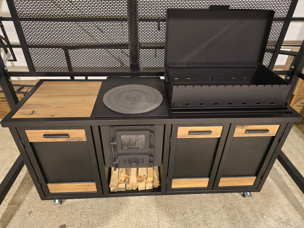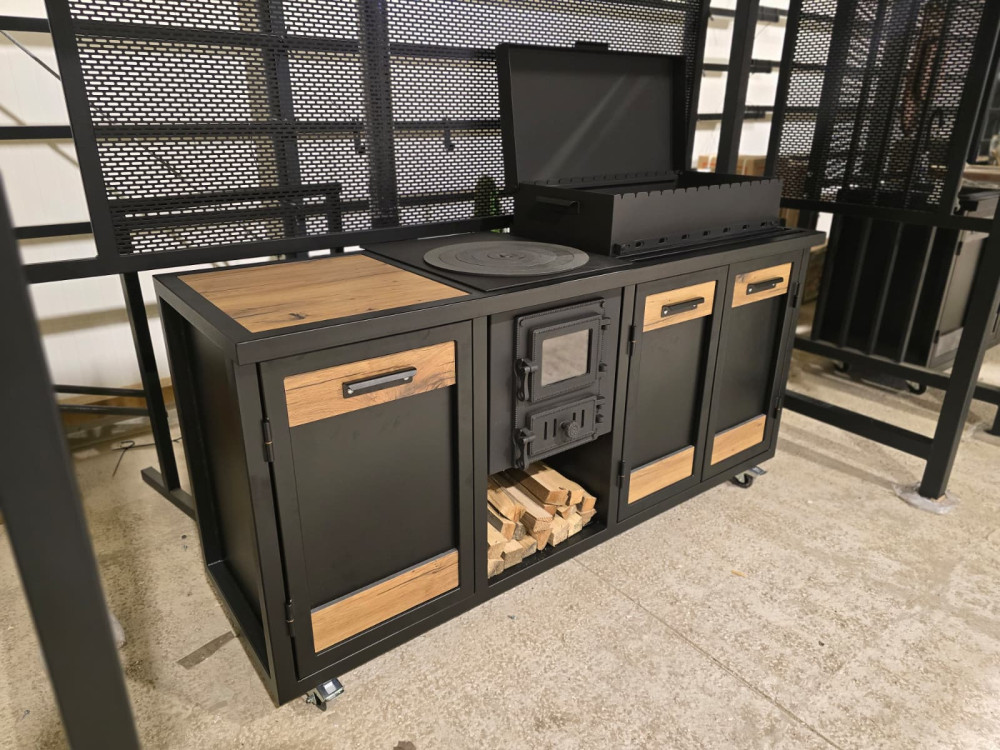 Virtuve sastāv no 3. moduļiem - krāsns, grils un darba virsma. Krāsota pulverkrāsā.