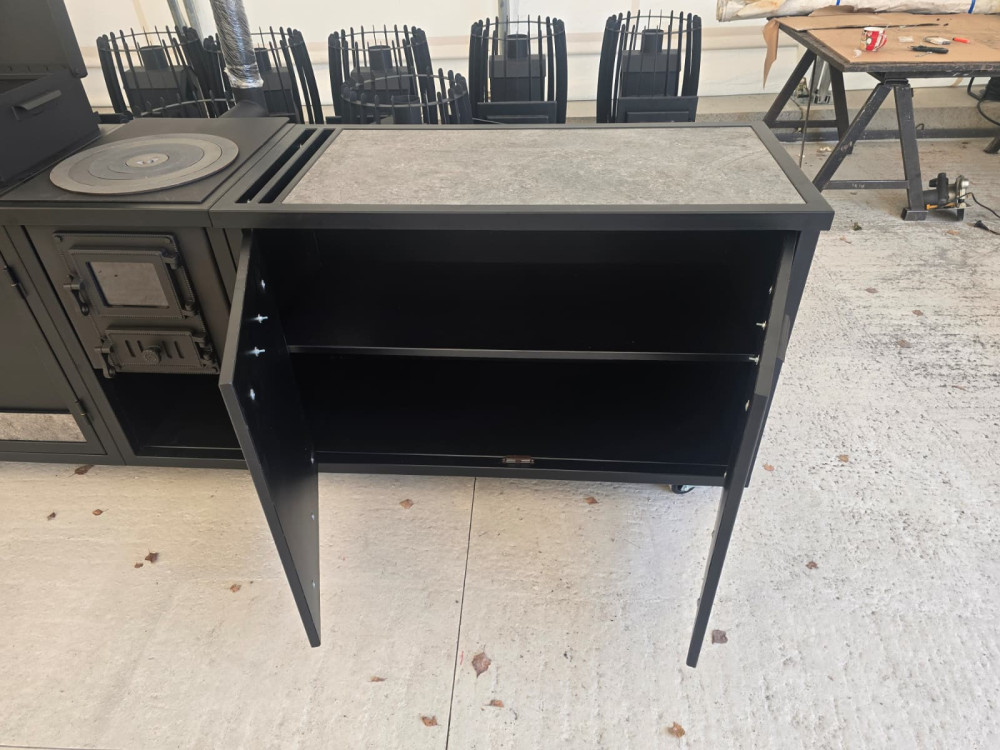 Virtuve sastāv no 3. moduļiem - krāsns, grils un darba virsma. Krāsota pulverkrāsā.