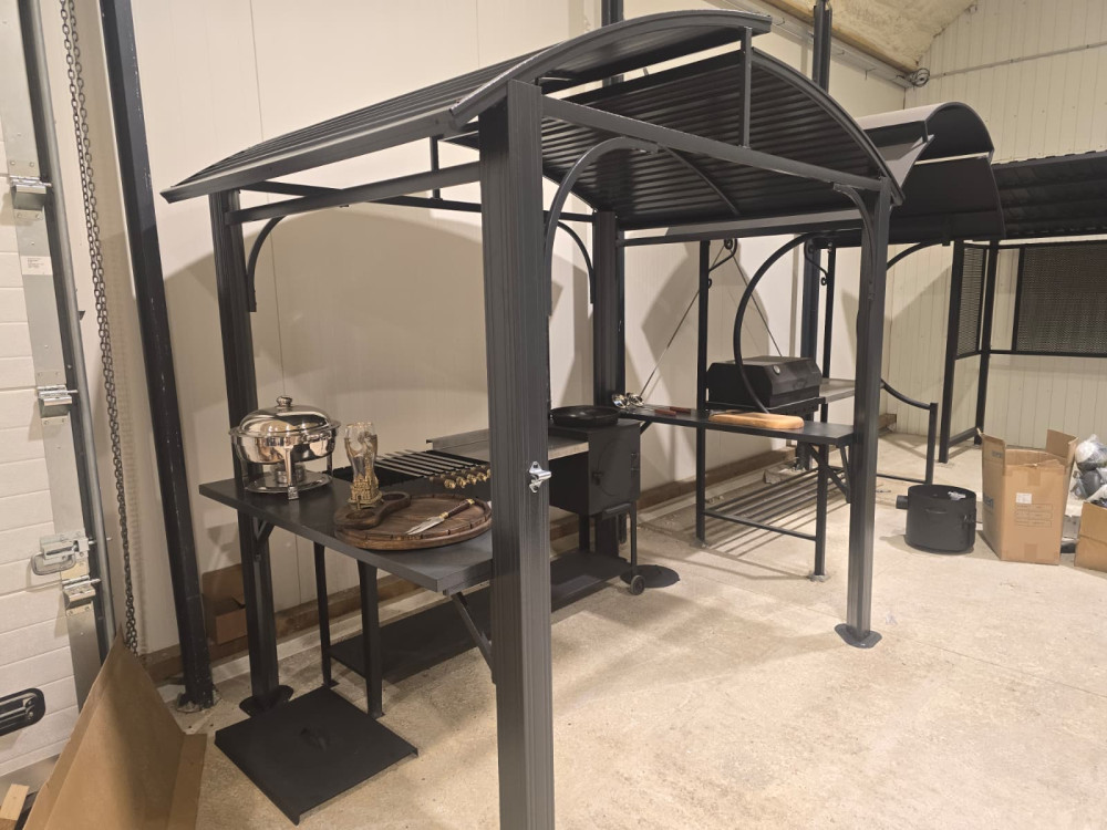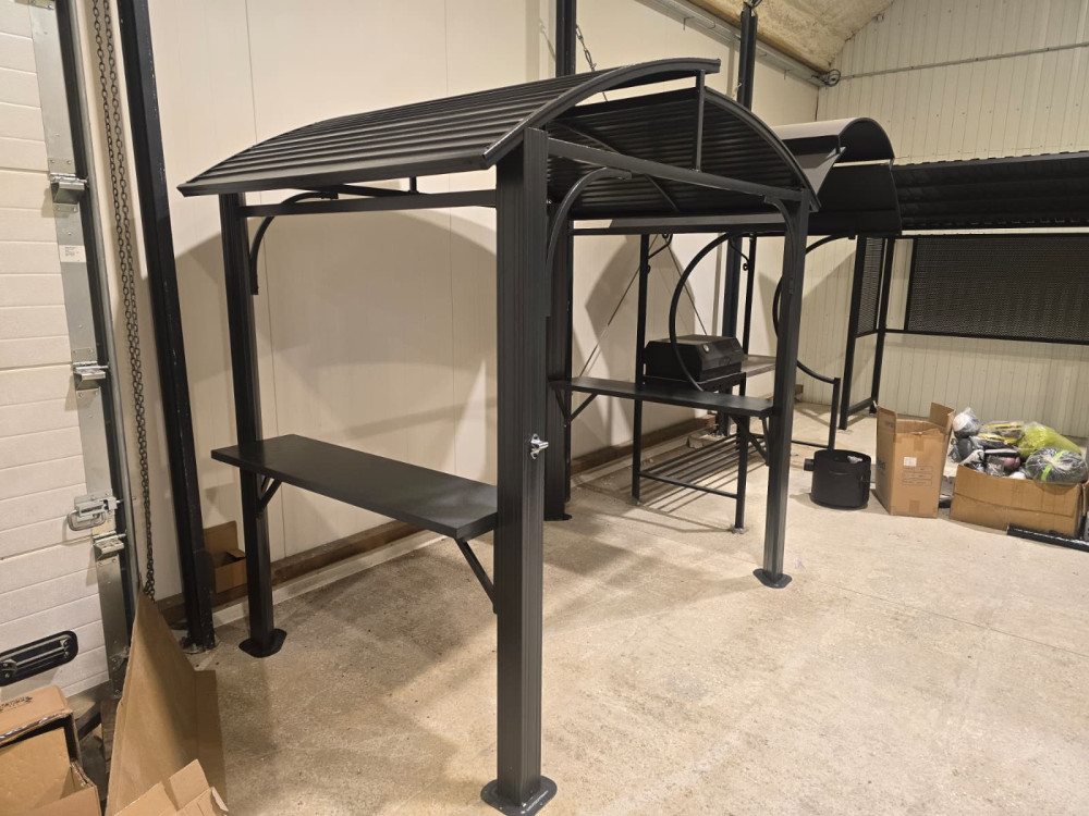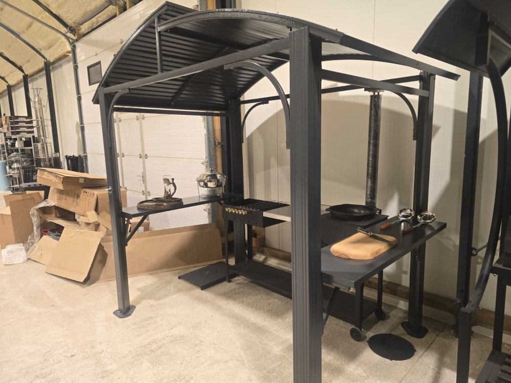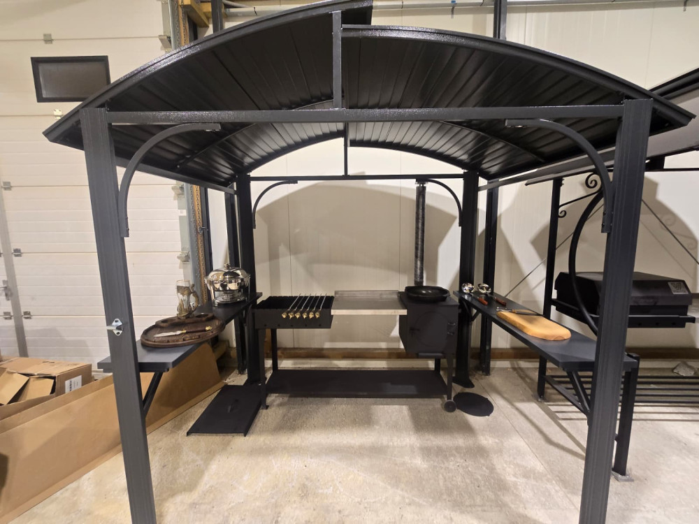 Metāla nojume grilam. Laba kvalitāte, stabila un izturīga konstrukcija. Cinkots metāls, krāsots pulverkrāsā. Pārdodas izjauktā veidā ar komplektēšanas instrukciju.