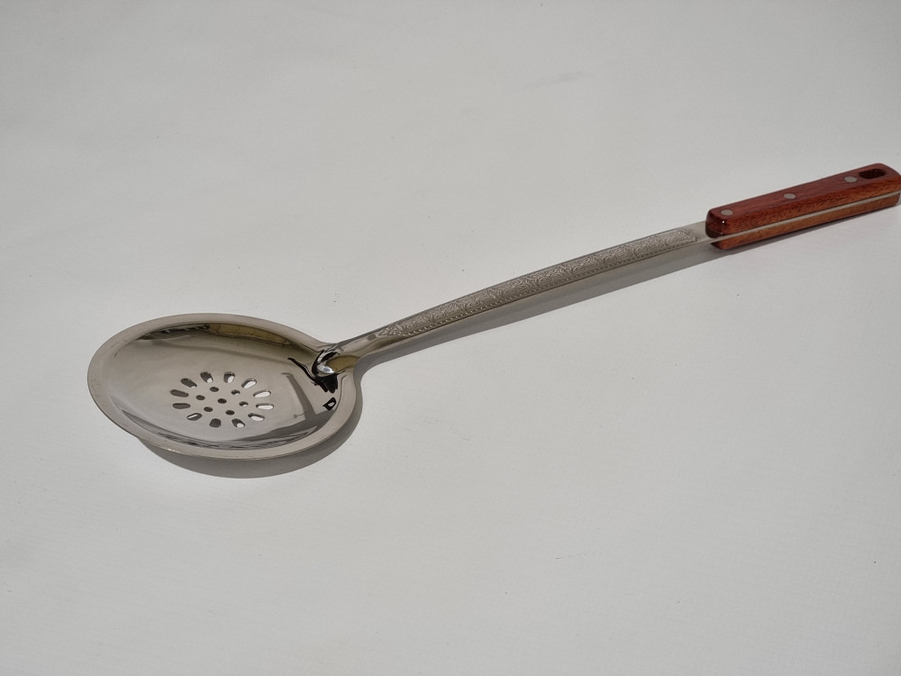 Karote vidēja - nerūsējošā tērauda karote ar lakotu koka rokturi.