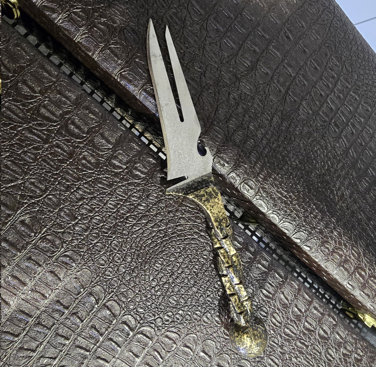 Nazis-dakša no nerūsējoša tērauda ar metāla rokturi. Izmanto lai ērti noņemt ēdienu no iesmiem.