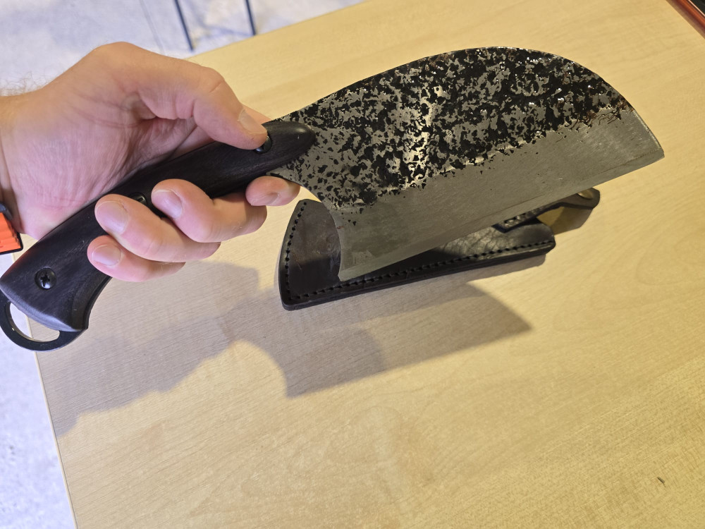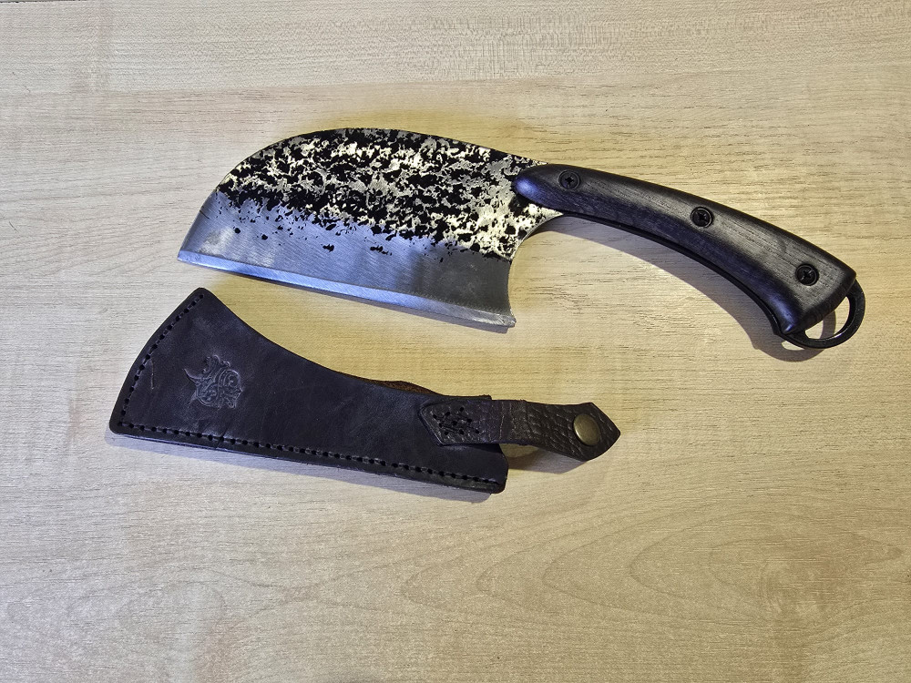 Serbu sušef nazis ar ādas maksti. Ļoti ērts nazis ēdienu gatavošanai.