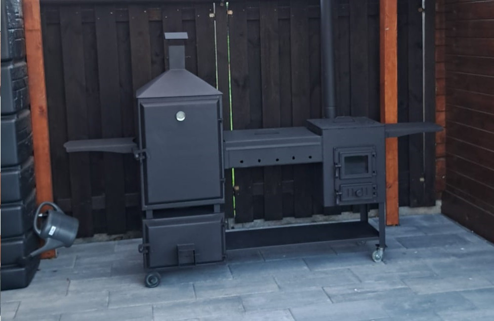 Liels, solīds KUNGU komplekts krāsns/grils/kūpinātava BIG 3in1 ar čuguna durvīm.