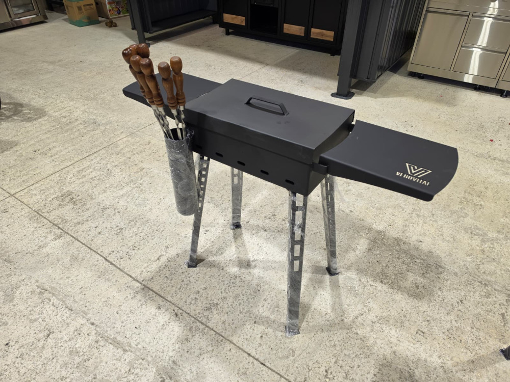 M9 - neliels, ērts, stabils grils ar noņemamām kājām. Grils apkārt apmetināts, ir stingrības ribas.