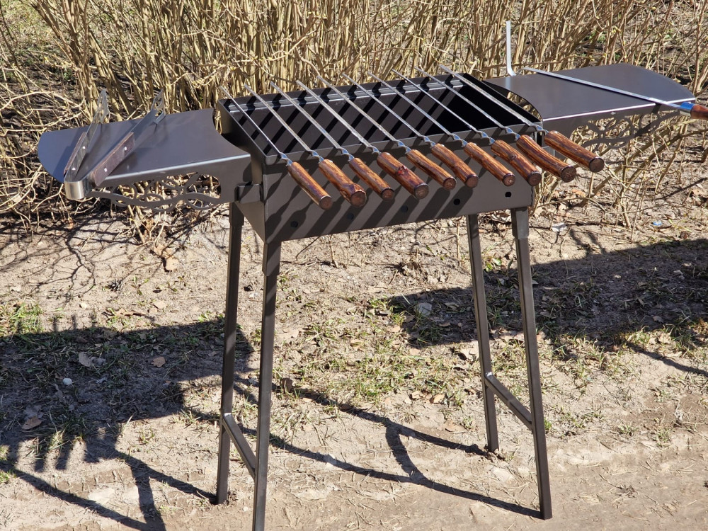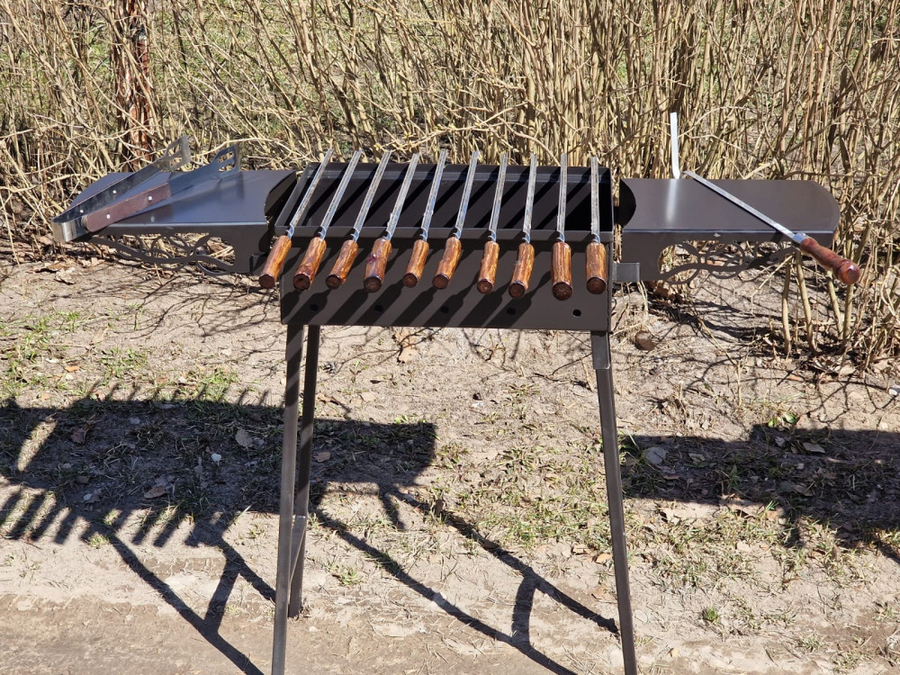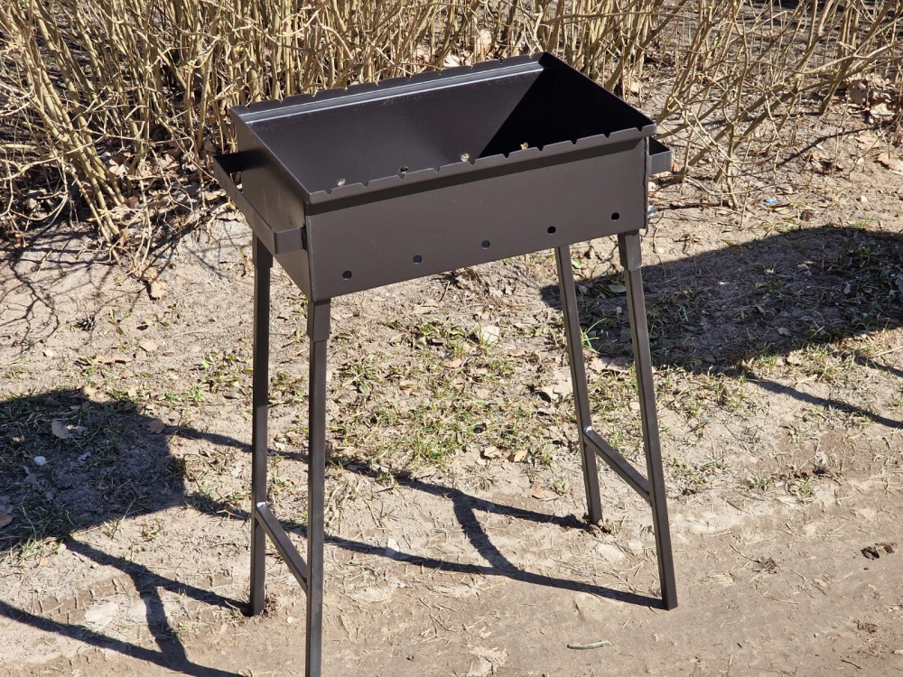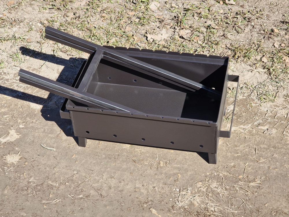 Apkārt sametināts mangals ar noņemamām kājām. Ir stingruma ribas.