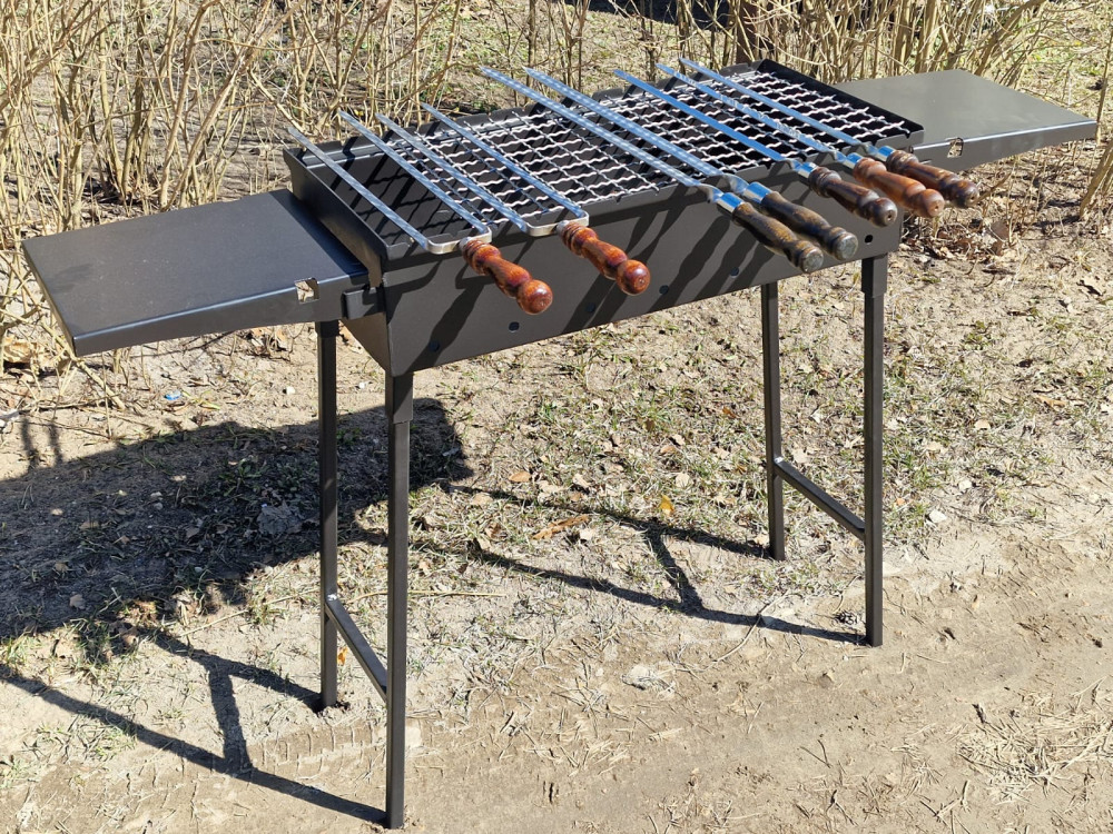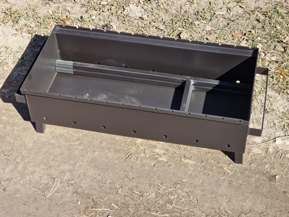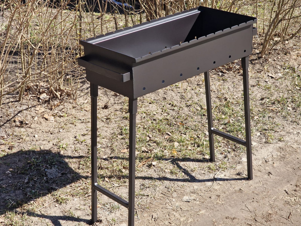 Apkārt sametināts mangals ar noņemamām kājām. Ir stingruma ribas.