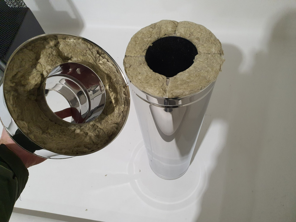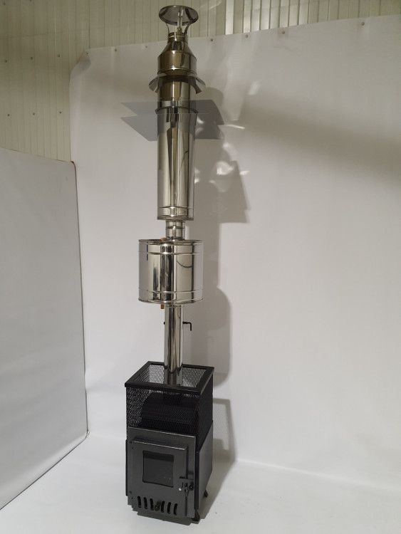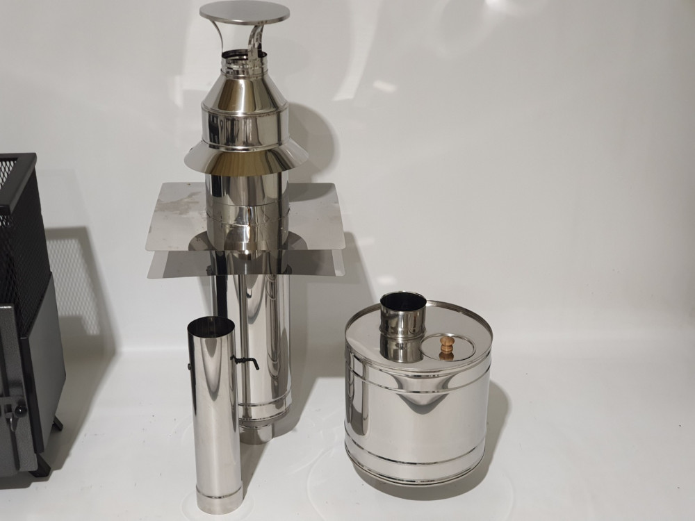 Pirts krāsns dūmvada komplekts ar tvertni. Nerūsējošais tērauds 304. Dūmvads ar siltinājumu.