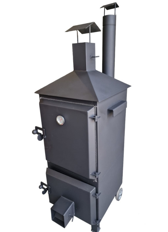 В комплекте: три решетки (полки), жирозборник (ящик для сбора жира и масла), колосник, ящик (лопатка) для пепла, термометр. Два шибера для регулеровки тяги, дыма.