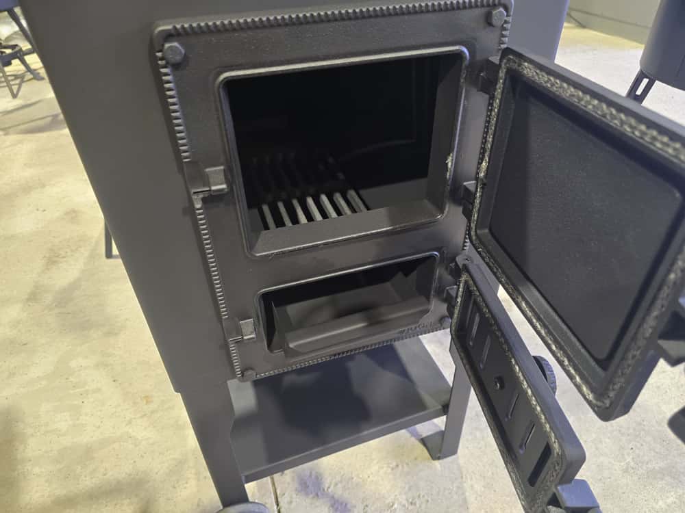 Функциональная и красивая печка с чугунными дверцами. Диаметр печки 45см.