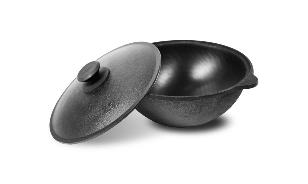 Чугунный узбекский казан на 3.5 л - оригинальный, качественный, шлифованный чугунный казан. Алюминиевая крышка с силиконовой ручкой.