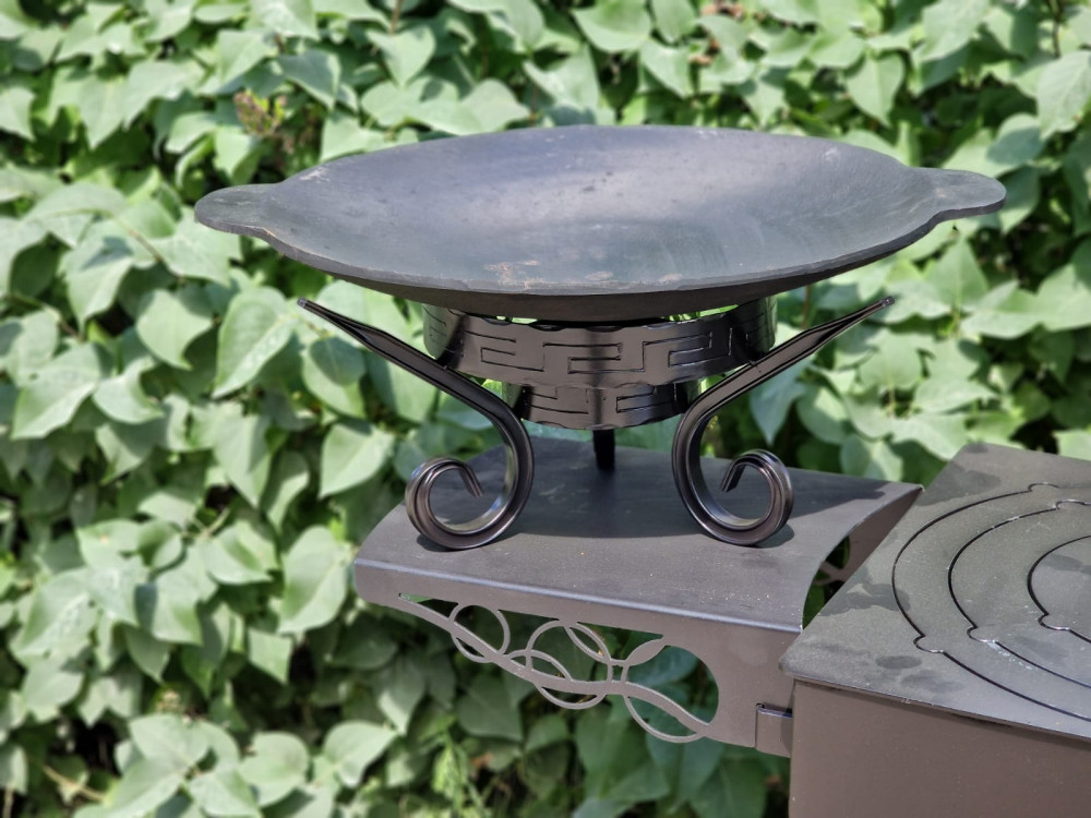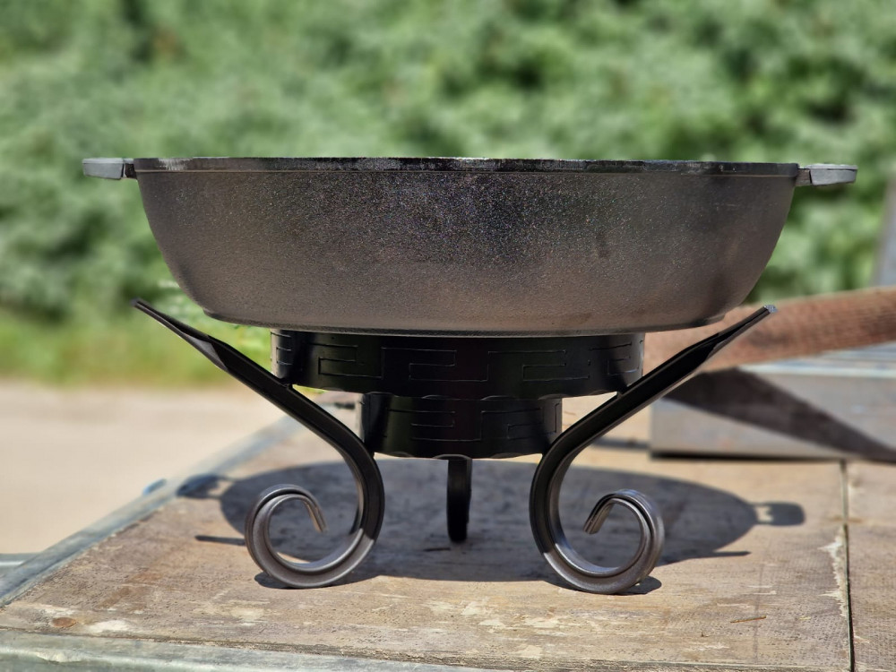 Металлическая подставка под казан, садж, сковороду и любую другую посуду. Чтобы дольше сохранить еду теплой можно положить внутрь подставки уголь.