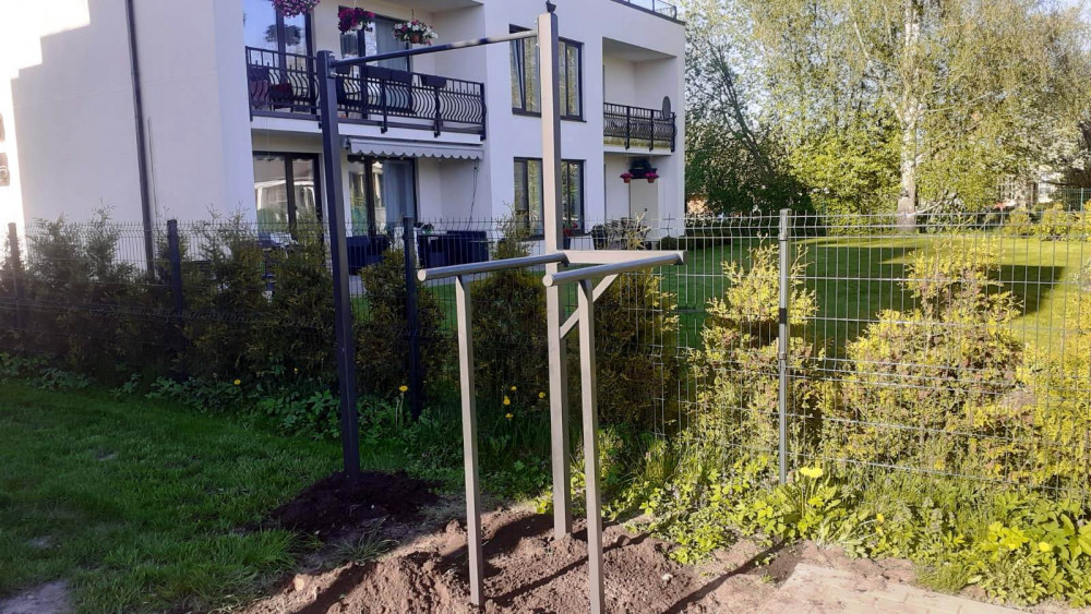 Уличный спортивный комплекс Nr23 - крепкий спортивный комплекс состоящий из 2 цельносварных частей. Возможен выбор цвета порошковой покраски.