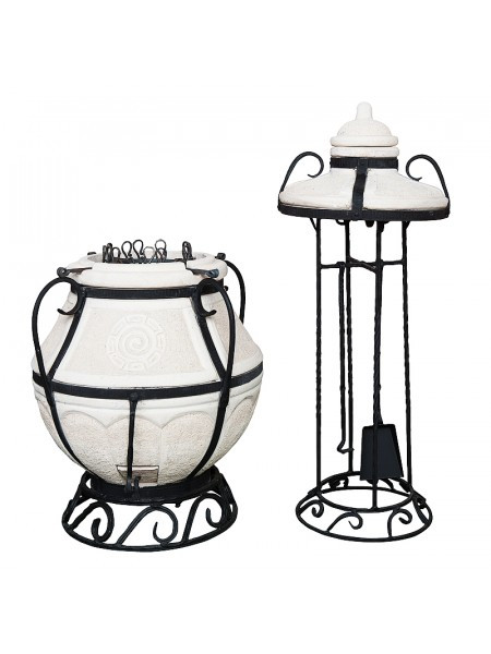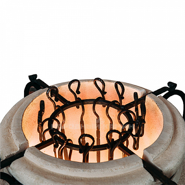 Приготовить любое блюдо можно с помощью колосника, совка, кочерги, приспособления для подвешивания шампуров, подставки и стойки. Все это входит в комплект Тандыра Аладдин мини.