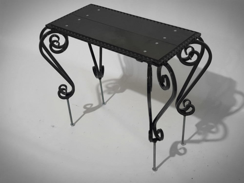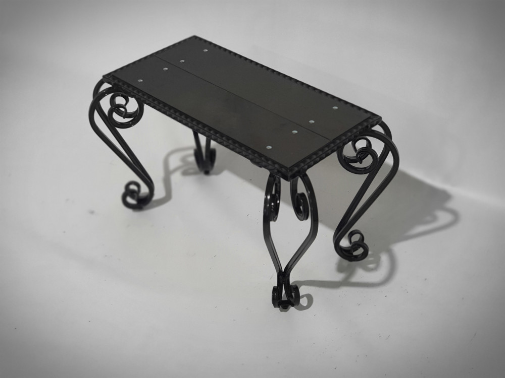 Vintāža soliņš bez atzveltnes - aukstā kaluma soliņš ar kompozīta dēļiem, pulverkrāsa. Komplektā papildus metāla stieni domāti betonēšanai, ja tas ir vajadzīgs.