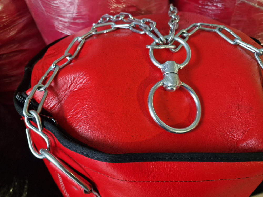 Boksa maiss, īsta āda, ar ķēdēm, gumijas pildījums (smags).