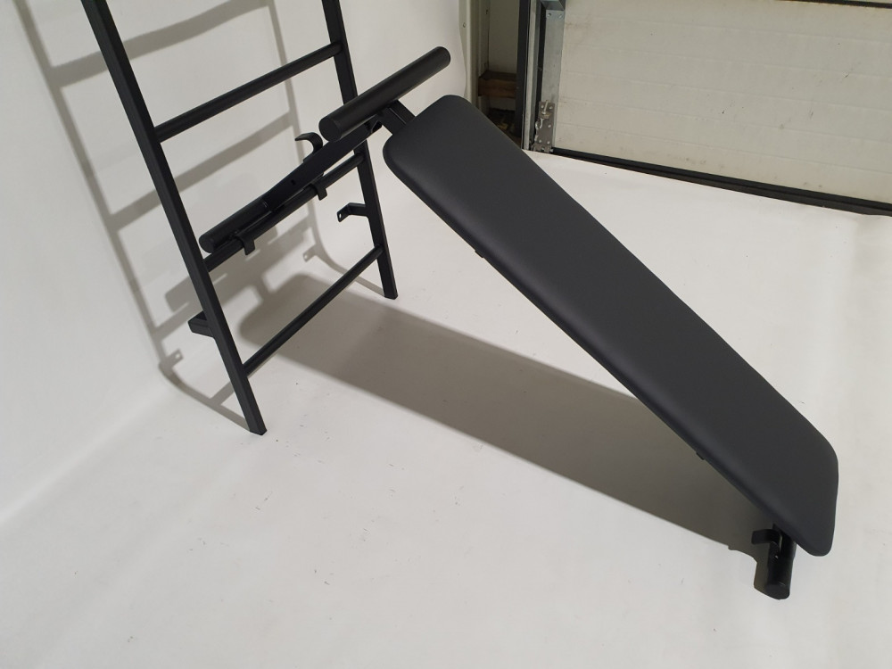 Pārvietojams treniņu sols zviedru sienai ar diviem ceļa atbalsta veltņiem. Muguras balsts ir pārklāts ar kvalitatīvu eco ādu kas padara to izturīgu un viegli kopjamu. Sols ir funkcionāls, stabils un ļoti izturīgs. Saliktā veidā neaizņem vietu.