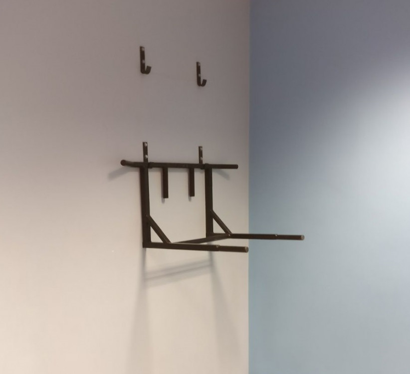 Universālais trenažieris divi vienā - pievilkšanas stienis + līdztekas. Ļoti izturīgs, pilnīgi sametināts trenažieris līdz 150kg. Komplektā 4 āķi. Iespējama pulverkrāsas izvēle.