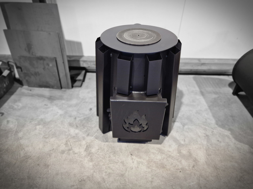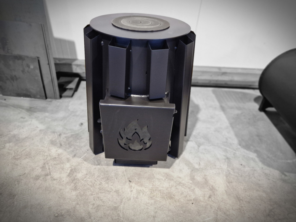 Taupības krāsns ar karstumiztūrīgam stikla durvīm.Krāsnī atrodas konvekcijas caurules, kuras ātri un efektīvi uzsilda gaisu telpā. Aukstais gaiss iesūcas pa apakšu, ejot caur konvekcijas caurulēm uzsildās un iznāk pa augšu.