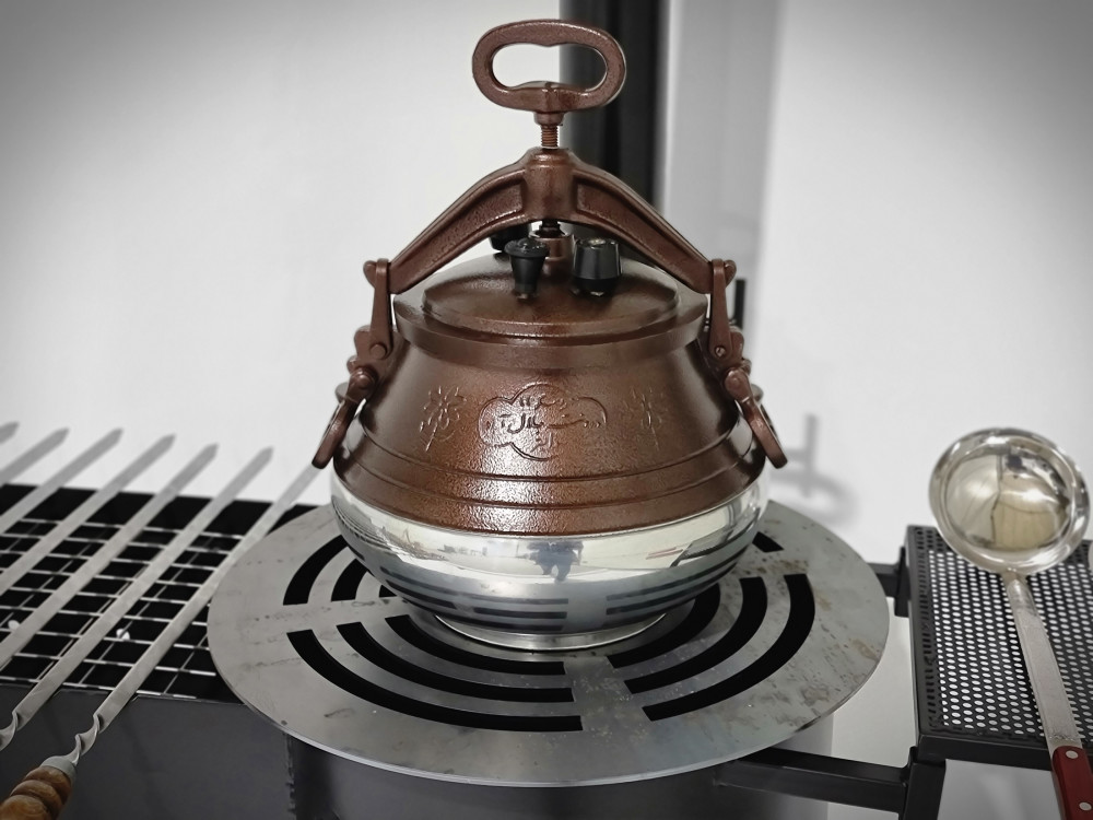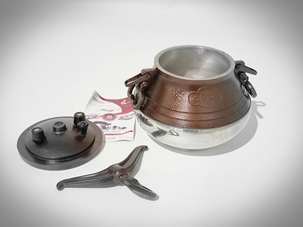 Afgāņu kazans. Tilpums 8L. Ēdiena pagatavošana zem spiediena. Darbības princips kā ātrvārājam katlam, tikai ar lielāku metāla biezumu 3 – 8 mm, izgatavots no izturīga alumīnija sakausējuma. Ir drošības vārsts un vārsts tvaika izlaišanai. Var piepildīt ne vairāk kā 2/3 no tilpuma.