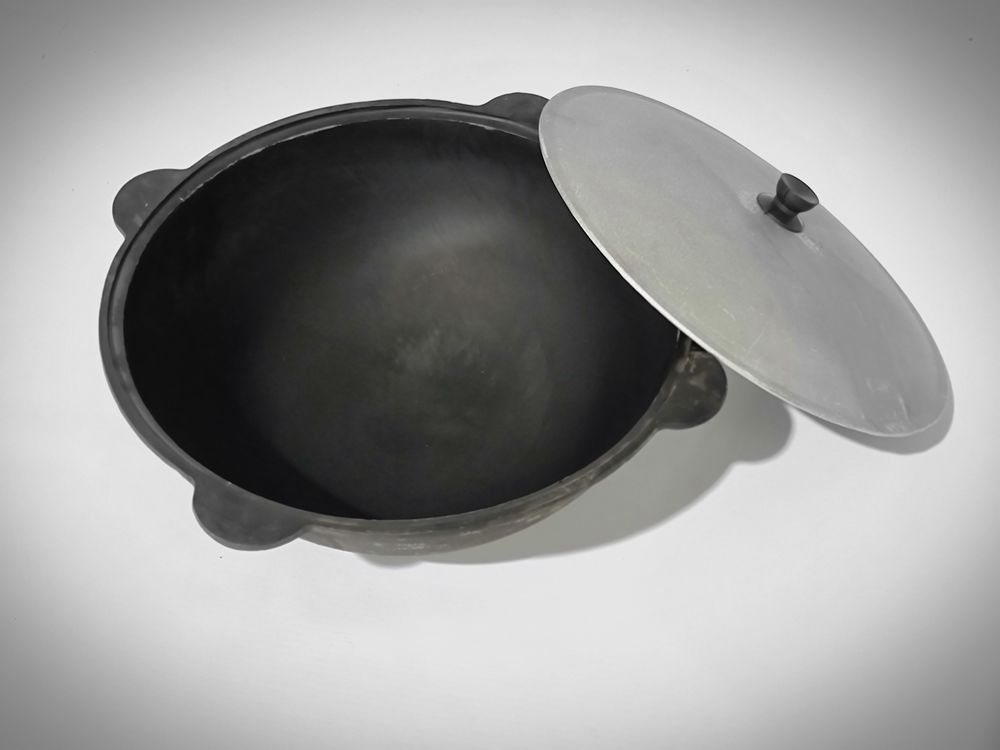 Čuguna uzbeku kazans 22l. Kvalitatīvs, oriģināls, slīpēts uzbeku čuguna kazans ar alumīnija vāku.