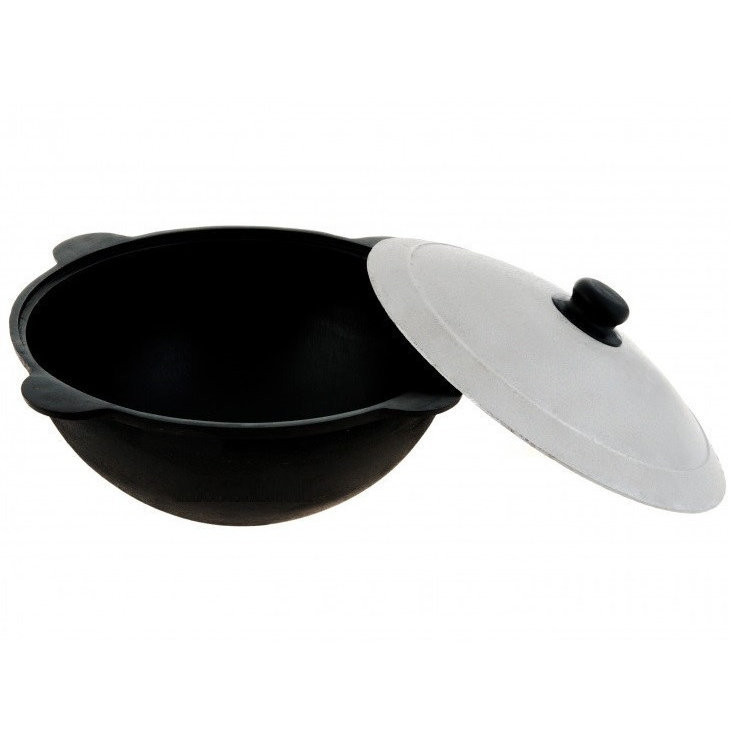 Čuguna uzbeku kazans 6l - oriģināls, slīpēts čuguna kazans ar alumīnija vāku.