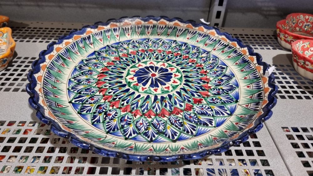 Keramikas uzbeku šķīvis Ljagan ar dekoratīvu malu. Roku darbs.